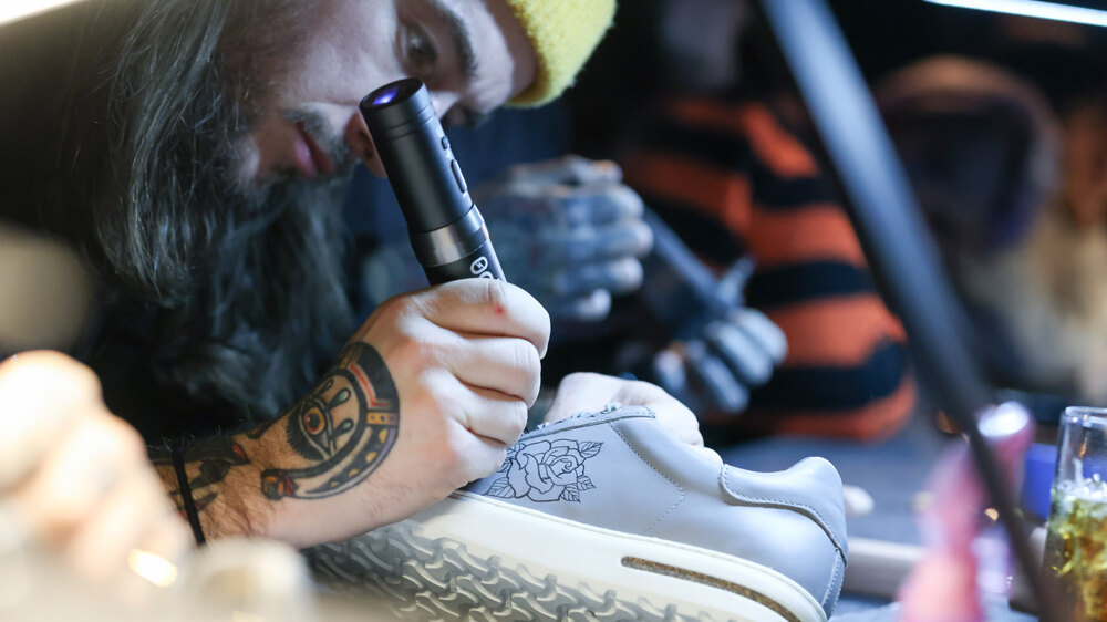 „Die Gäste waren begeistern davon, wie viel sie lernen konnten,“ sagt Cansu Elman, Head of Innovation bei BIRKENSTOCK, deren Team den 3D-Fußscanner betreute. Diese Hightech-Maschinen ermöglichten es den Gästen, ihre Füße haargenau auszumessen und so die perfekte Passform für ihren neuen BIRKENSTOCK BEND herauszufinden. An den Arbeitsstationen der Tattoo-Artists von Three Kings Tattoo und des Lasergravurteams, an dem sich die Gäste ihre neuen Schuhe als Erinnerung an dieses denkwürdige Event individualisieren lassen konnten, herrschte reger Andrang. „Das Event hat BIRKENSTOCK genau so präsentiert, wie wir sind – authentisch und bodenständig. Ich mochte die entspannte Atmosphäre – die Gäste konnten einfach mit einem Drink in der Hand umherwandern und sich die verschiedenen Installationen anschauen,“ ergänzt Cansu.
