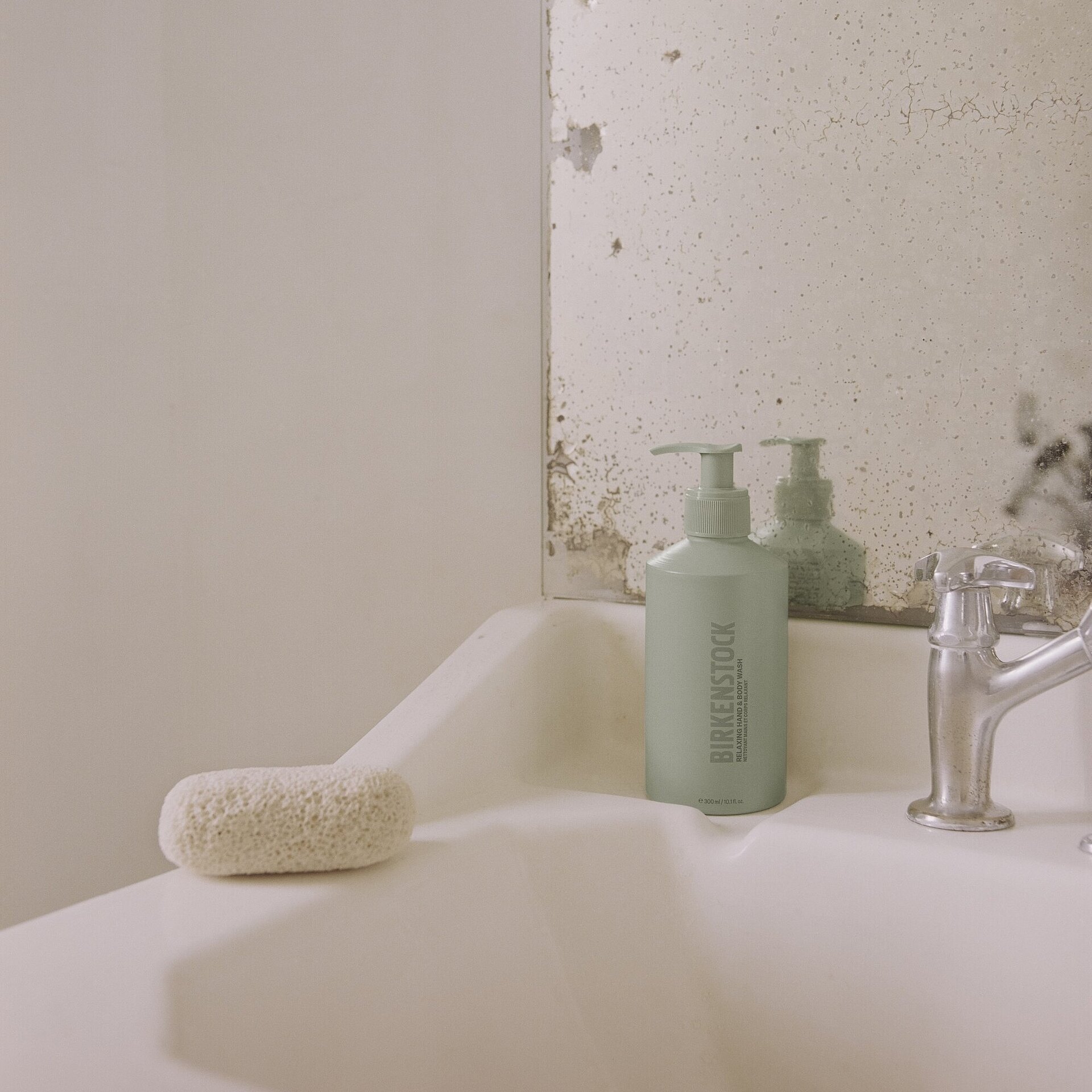 In line with the main product principles of the collection, the packaging is designed for function and simplicity. Minimal, sustainable and highly functional: BIRKENSTOCK’s Care Essentials Body Wash + Lotion dispensers are made of post-consumer recycled aluminium bottles and tubes** made in Europe. The folding boxes are FSC-certified, and all packaging material is sourced in Europe.