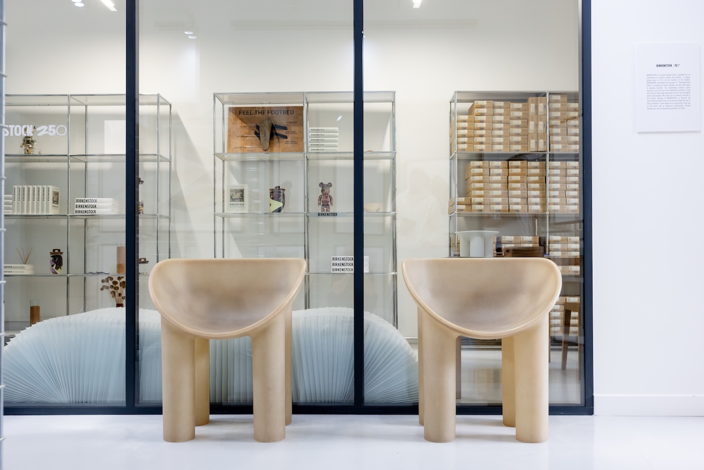 Henry Leutwyler's photographs "Walk with me" welcomed the visitor. An exhibition of still-life images revealing the little-known treasures of the BIRKENSTOCK archives invited to immerse into the brand universe. The photos were accompanied by original items from the BIRKENSTOCK archives and will be published as part of a limited-edition book, "Old Mills Never Die", curated and published by Steidl Verlag, to be released in July 2024. The photographic exhibition will travel around the world throughout the year, visiting cities including London, Tokyo, Seoul, Singapore, Shanghai and Melbourne.
