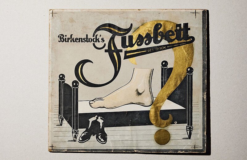 The Birkenstock Corporate Archive includes this original stand-up display from the 1920s. It was made available to shoe shops that sold the flexible insoles made by K. Birkenstock GmbH and to shoemakers who incorporated the footbed into shoes. The powerful symbolism of the foot in a bed is striking. The large golden question mark remains something of a mystery. But it may be that – as would often prove to be the case in the company’s history – Birkenstock was being avant-garde here, too, by presenting an ad that got people asking questions and which therefore attracted attention.